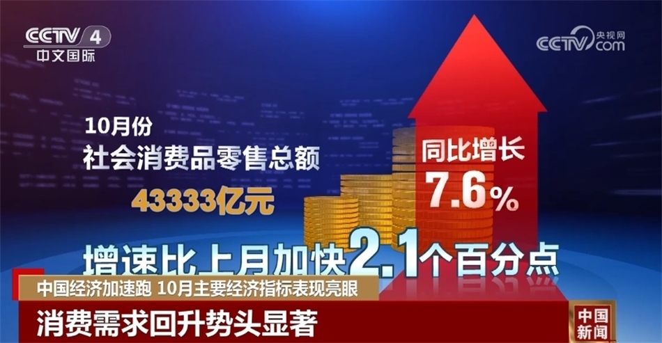 央視網消息:來關注中國經濟10月報。國家統(tǒng)計局昨天(11月15日)發(fā)布了10月份經濟主要指標。數據顯示,隨著宏觀調控政策持續(xù)發(fā)力顯效,全國生產供給穩(wěn)中有升,市場需求持續(xù)改善,就業(yè)物價總體穩(wěn)定,高質量發(fā)展扎實推進,國民經濟持續(xù)恢復向好。