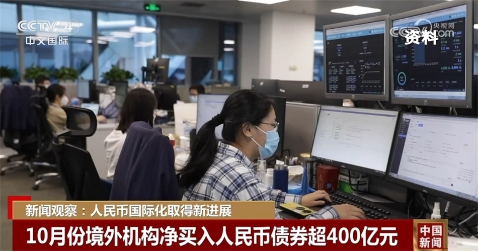 10月,境外機(jī)構(gòu)凈買入人民幣債券超400億元,創(chuàng)下過去四個月以來新高。截至10月末,共有1110家境外機(jī)構(gòu)主體進(jìn)入中國債券市場,顯示人民幣投融資和避險功能逐步增強(qiáng)。