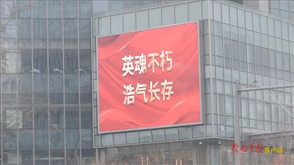 “英靈不朽,山河永念”“忠魂不泯,豐碑永存”“英雄城市,英雄回家”……公交站臺(tái)、樓宇外墻、室外大屏被句句標(biāo)語(yǔ)點(diǎn)亮,對(duì)英雄的敬意化為紅色暖流,淌過(guò)城市的每條街巷,淌進(jìn)人們心中。