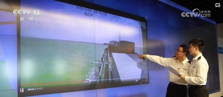 在深圳海關(guān),關(guān)員們正在通過系統(tǒng)實時查看裝載“大灣區(qū)組合港”貨物的駁船途中運(yùn)輸情況。系統(tǒng)接入了多方數(shù)據(jù),能夠?qū)崿F(xiàn)組合港貨物全流程“數(shù)據(jù)流、軌跡流、視頻流”管控,以“制度+科技”加強(qiáng)“大灣區(qū)組合港”這一創(chuàng)新改革項目的監(jiān)管手段。