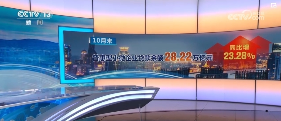 國(guó)家金融監(jiān)督管理總局最新數(shù)據(jù)顯示,10月末,全國(guó)普惠型小微企業(yè)貸款余額28.22萬(wàn)億元,同比增長(zhǎng)23.28%,較各項(xiàng)貸款增速高13.01個(gè)百分點(diǎn)。