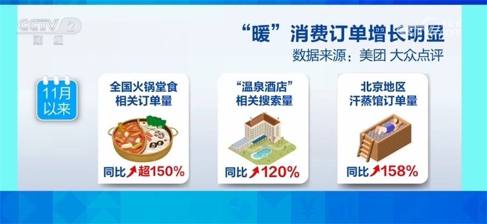 ?????? 數(shù)據(jù)顯示,11月份以來(lái),全國(guó)火鍋堂食相關(guān)訂單量同比增長(zhǎng)超150%,“溫泉酒店”的相關(guān)搜索量同比增長(zhǎng)120%,其中北京地區(qū)汗蒸館訂單量同比增長(zhǎng)158%。