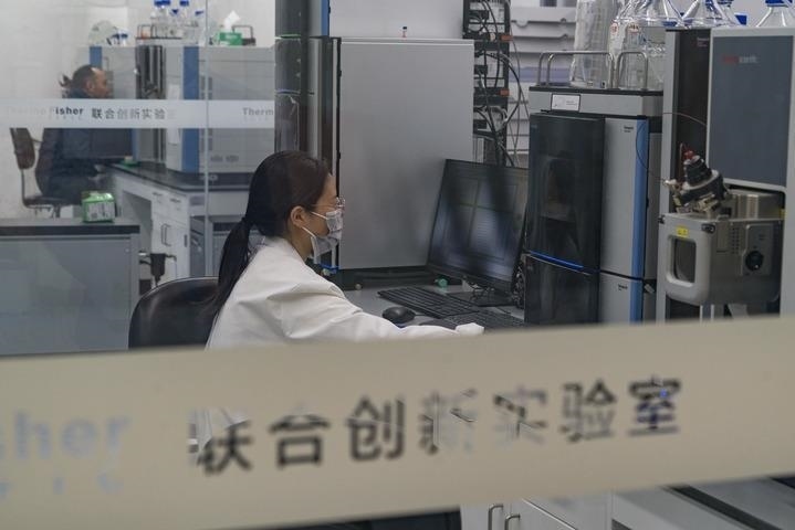 在成都天府國際生物城一處實驗室,研究人員在工作(2023年4月25日攝)。新華社記者 唐文豪 攝