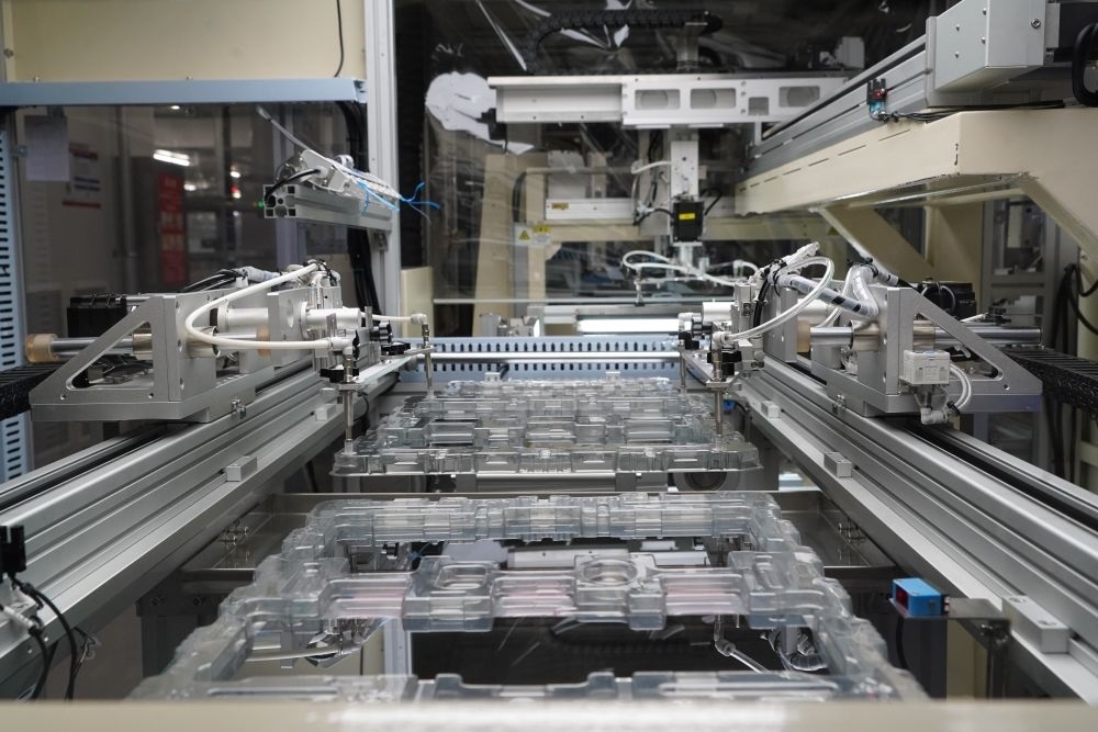 在成都高新區(qū)京東方成都車載顯示基地拍攝的顯示屏自動化生產(chǎn)線(2023年9月8日攝)。新華社記者 唐文豪 攝