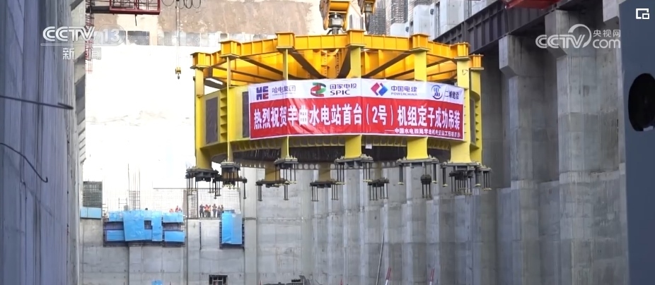 羊曲水電站首臺機組定子吊裝成功