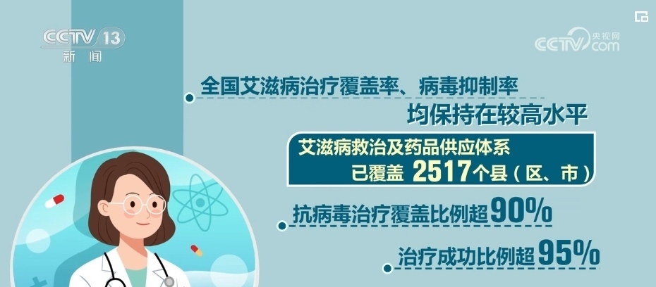 全國艾滋病治療覆蓋率、病毒抑制率均保持在較高水平。艾滋病救治及藥品供應體系已覆蓋2517個縣(區(qū)、市),抗病毒治療覆蓋比例超90%,治療成功比例超95%。