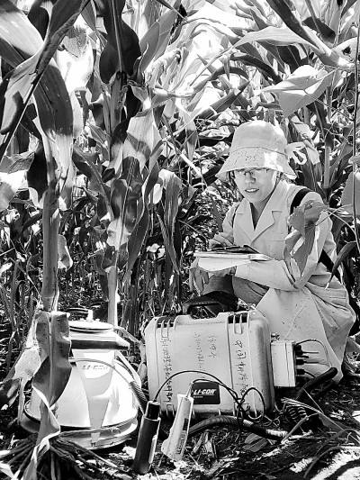 “隊(duì)員們每天早上5點(diǎn)就要前往試驗(yàn)田,趕上洪澇就得穿著靴子蹚過及膝的水,水灌進(jìn)靴筒,就像腿上綁了沙袋走在沼澤地里一樣。每個(gè)人還要提著兩個(gè)設(shè)備采樣,騰不出手扒開玉米葉子,大家就用頭頂出了一條路,臉上免不了被葉子劃傷。晚上回寢室,刷掉靴子里的泥,就得晚上12點(diǎn)多了。第二天早上5點(diǎn),又要開始新一天的采樣。”團(tuán)隊(duì)成員王軼昂說。
