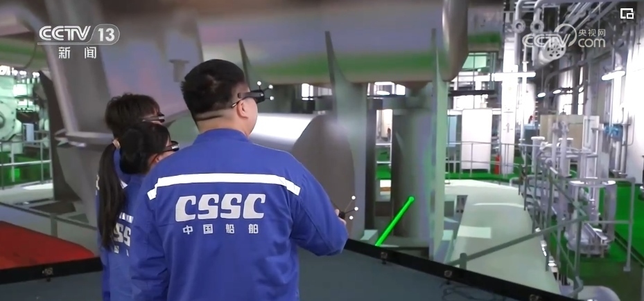 總臺央視記者 吳天白:如今造船靠的就是這艘“數(shù)字樣船”,戴上3D眼鏡便置身于一艘液化氣船的機(jī)艙,不僅能將船艙內(nèi)的情況盡收眼底。數(shù)字化工具就像庖丁解牛,把船舶這個巨系統(tǒng)拆解得清清楚楚,整合得天衣無縫,從而提升設(shè)計、制造的效率。