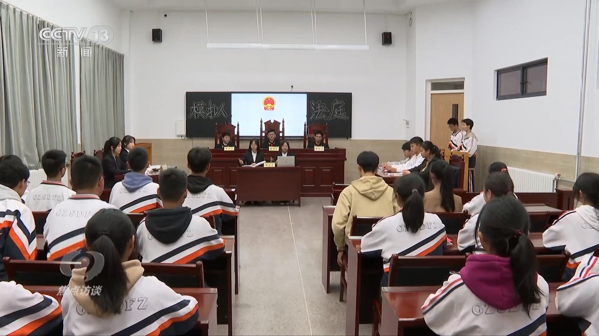 貴州師大附中高二學(xué)生朱培源正在參加學(xué)校組織的“模擬法庭”,他模擬的角色是審判長。這次“庭審”模擬的是前幾年一起關(guān)于公民受教育權(quán)受到侵害的案件:某鄉(xiāng)鎮(zhèn)的一個(gè)家庭放任正在讀初中的孩子輟學(xué),經(jīng)多次走訪溝通無效后,鎮(zhèn)人民政府一紙?jiān)V狀把家長告上法庭。在“模擬法庭”上,朱培源宣讀了憲法中的相關(guān)條文,并模擬宣判。