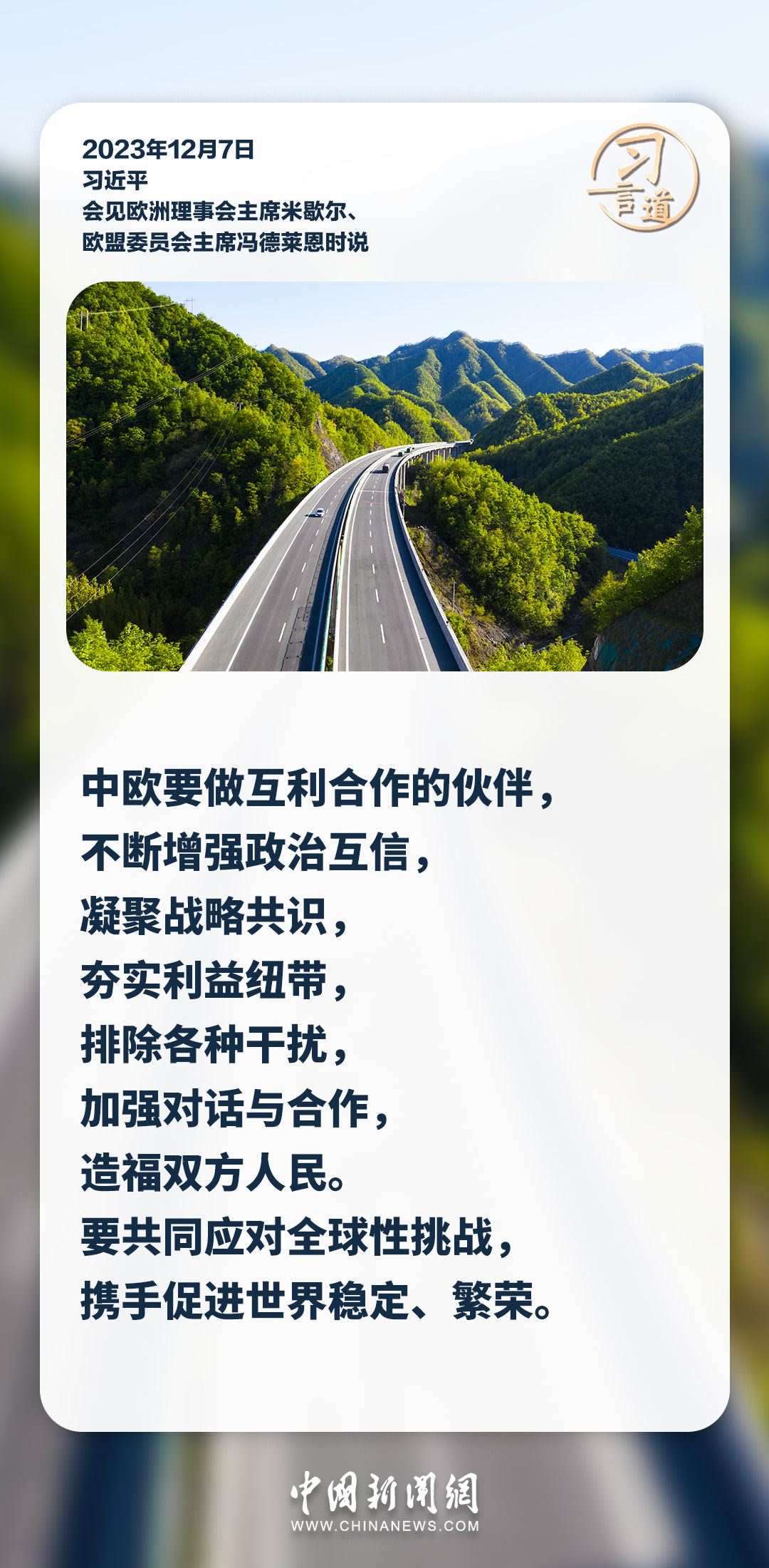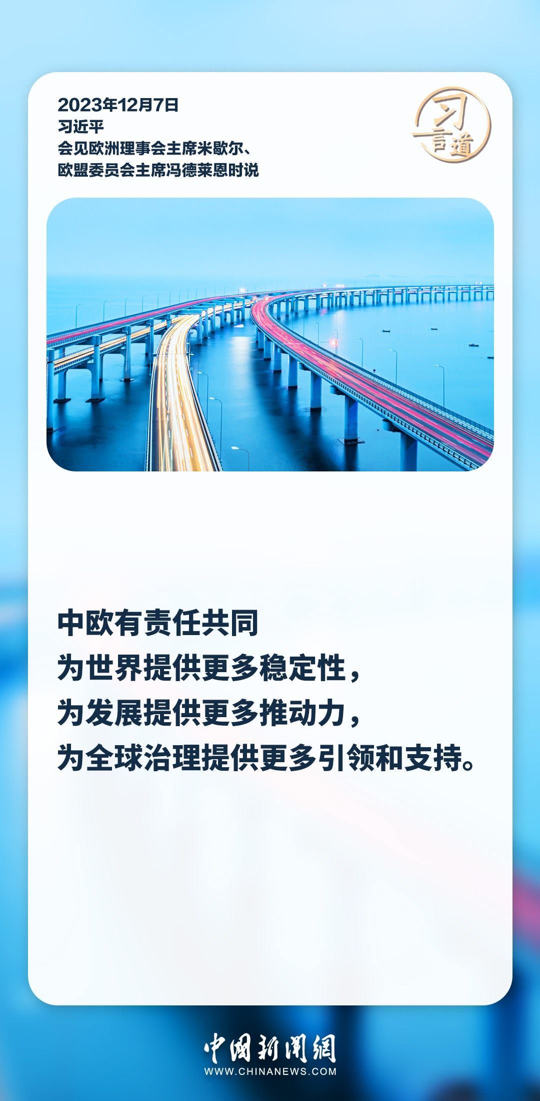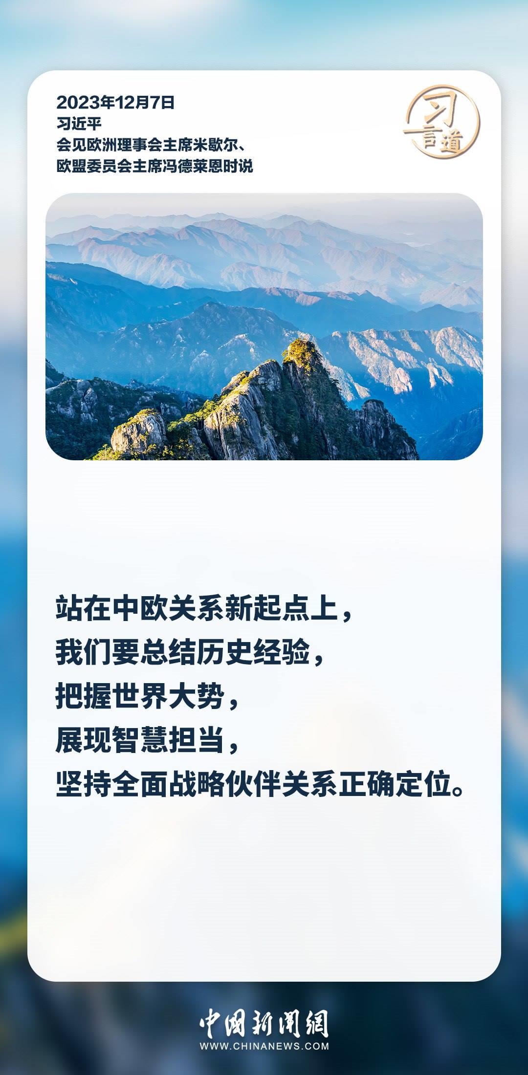 12月7日,國家主席習(xí)近平在釣魚臺國賓館會見來華舉行第二十四次中國—?dú)W盟領(lǐng)導(dǎo)人會晤的歐洲理事會主席米歇爾和歐盟委員會主席馮德萊恩。習(xí)近平說——