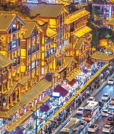 重慶洪崖洞景區(qū),眾多游客前來(lái)游玩。