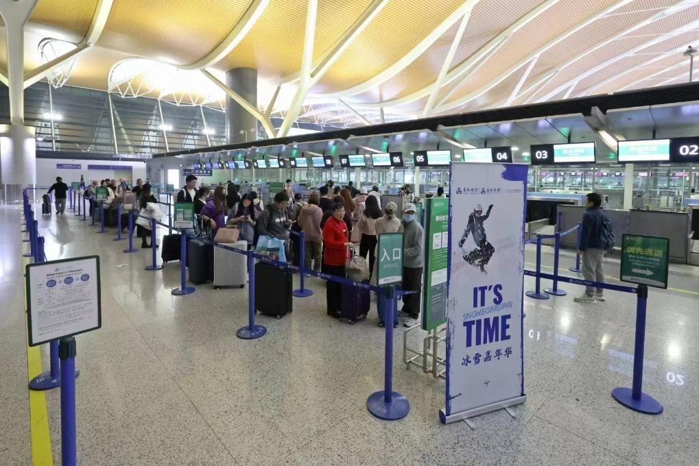 11月23日,一批游客從上海出發(fā)前往長(zhǎng)白山參加“冰雪嘉年華”。新華社記者陳愛平 攝