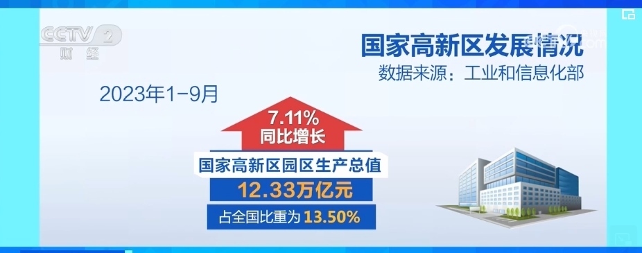 2023年前三季度,國家高新區(qū)園區(qū)生產(chǎn)總值為12.33萬億元,同比增長(zhǎng)7.11%,占全國比重為13.50%,集聚了全國1/3的高新技術(shù)企業(yè)和2/3的科創(chuàng)板上市企業(yè)。