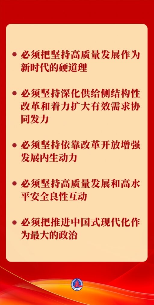 “五個必須”,進一步豐富和發(fā)展了習近平經(jīng)濟思想,為以中國式現(xiàn)代化全面推進強國建設(shè)、民族復(fù)興偉業(yè)指明了前進方向。