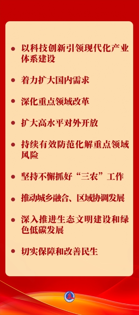 圍繞推動高質(zhì)量發(fā)展,這次中央經(jīng)濟(jì)工作會議對2024年要扎實(shí)做好的九項(xiàng)重點(diǎn)任務(wù)作出部署,體現(xiàn)了突出重點(diǎn)、把握關(guān)鍵的政策導(dǎo)向。
