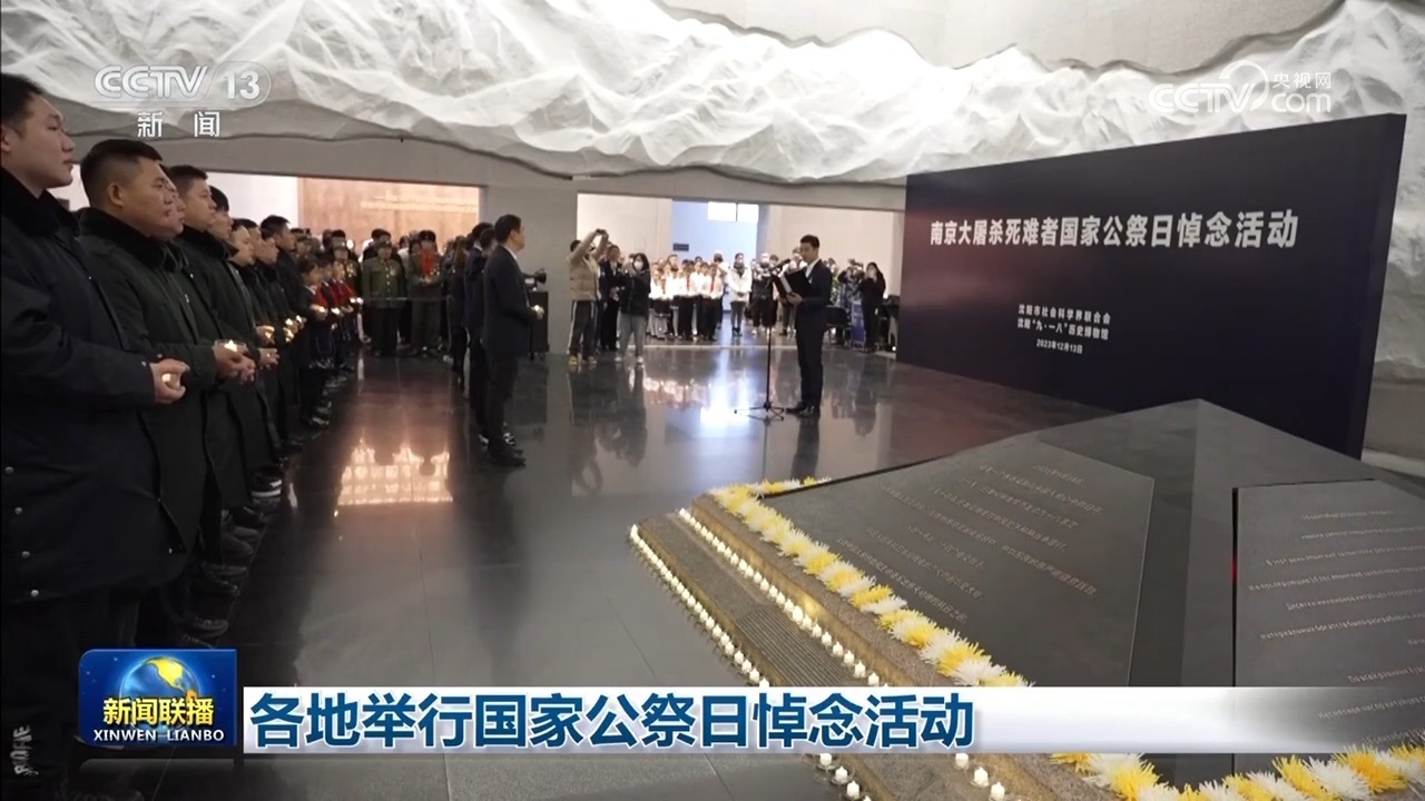 央視網(wǎng)消息(新聞聯(lián)播):今天(12月13日),各地舉行國家公祭日悼念活動,銘記歷史、珍愛和平,凝聚奮進(jìn)力量。