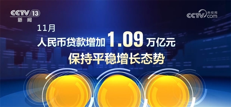 11月當(dāng)月人民幣貸款增加1.09萬億元,保持平穩(wěn)增長態(tài)勢。