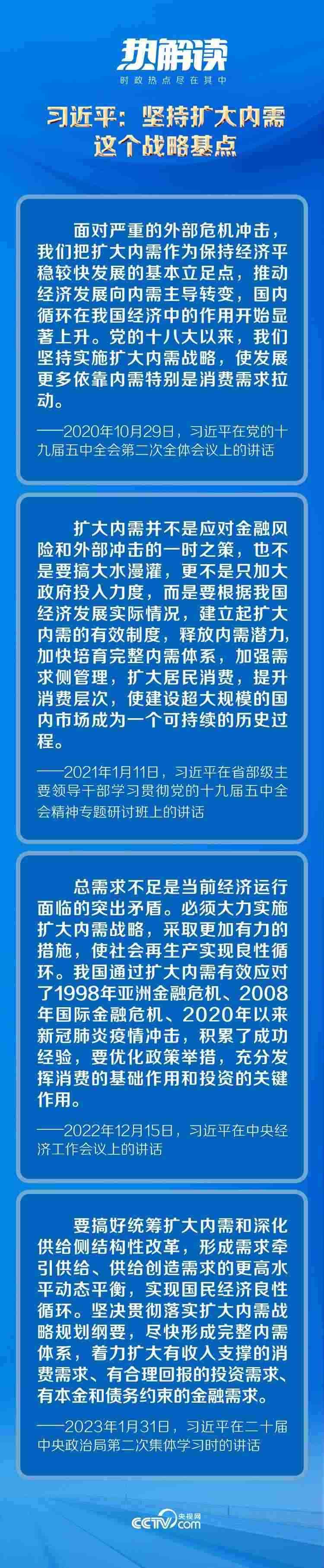 黨的十八大以來,習近平總書記從我國經(jīng)濟運行的實際出發(fā),對擴大內(nèi)需作出了一系列重要論述,為實施擴大內(nèi)需戰(zhàn)略提供了科學指引。