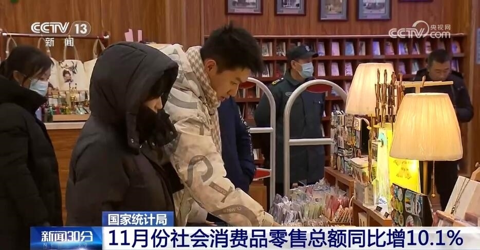 市場(chǎng)銷售增勢(shì)較好,服務(wù)消費(fèi)持續(xù)較快增長(zhǎng),11月份,社會(huì)消費(fèi)品零售總額同比增長(zhǎng)10.1%,比上月加快2.5個(gè)百分點(diǎn)。