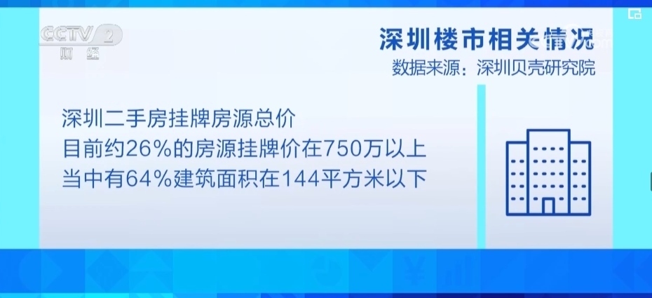 深圳貝殼研究院的數(shù)據(jù)顯示,從深圳二手房掛牌房源的總價來看,目前約26%的房源掛牌價在750萬以上,這部分房源當中有64%是建筑面積在144平方米以下的,換算之后約17%的掛牌房源是這次普通住房標準調整的直接受益者。