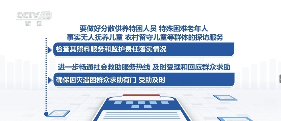 要做好分散供養(yǎng)特困人員、特殊困難老年人、事實(shí)無人撫養(yǎng)兒童、農(nóng)村留守兒童等群體的探訪服務(wù),檢查其照料服務(wù)和監(jiān)護(hù)責(zé)任落實(shí)情況。進(jìn)一步暢通社會救助服務(wù)熱線,及時(shí)受理和回應(yīng)群眾求助,確保因?yàn)?zāi)遇困群眾求助有門、受助及時(shí)。