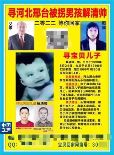 那是尋子25年的第一年。第一時間報警、發(fā)動親友尋找,能想到的措施,解克鋒都用了。邢臺周邊、北京、河南,騎自行車、摩托車、坐火車,有一絲希望的地方,夫妻倆都去過。“盡快找到孩子吧,再耽誤下去,孩子長大變了模樣,從眼前走過也認(rèn)不出了”, 這是一個父親最深的恐懼。