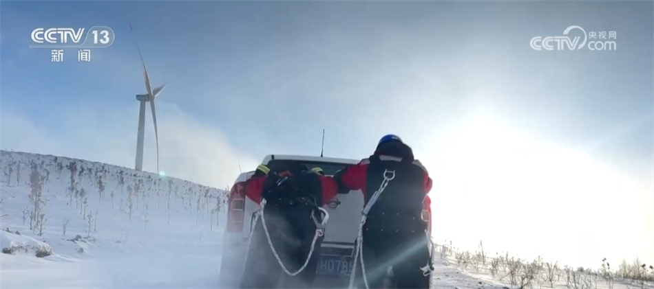 在河北張家口沽源縣,最高氣溫只有零下17攝氏度。華電冀北新能源馳盛風(fēng)電場的運(yùn)維員工,冒著寒風(fēng)檢查線路覆冰情況,發(fā)現(xiàn)并消除線路覆冰101公里。