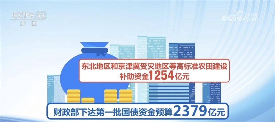 央視網(wǎng)消息:今年四季度中央財政將增發(fā)1萬億元國債,專項用于支持災(zāi)后恢復(fù)重建和提升防災(zāi)減災(zāi)能力。不久前,由國家發(fā)展改革委、財政部會同相關(guān)部門建立的增發(fā)國債項目實(shí)施工作機(jī)制已經(jīng)確定第一批項目清單。記者從財政部最新了解到,第一批國債資金預(yù)算2379億元已經(jīng)下達(dá)。
