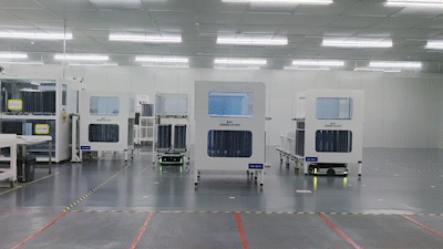 龍港新城國電投新能源5GW高效異質(zhì)結(jié)電池及組建量產(chǎn)基地生產(chǎn)車間。新華網(wǎng)發(fā) 胡炎楨攝 陳曉光制(動(dòng)圖)
