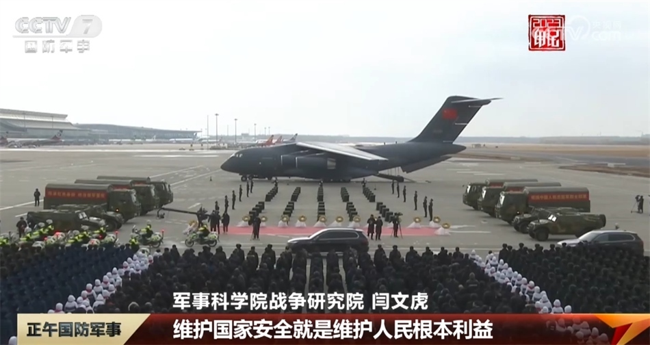 守護國防安全,我們每個人都是衛(wèi)士。今年11月,我們第十次迎回了抗美援朝保家衛(wèi)國的烈士遺骸。11月23日上午,遼寧沈陽桃仙國際機場,兩架殲-20戰(zhàn)機護航運-20運輸機呼嘯而來,運-20降落,緩緩?fù)ㄟ^水門,以最高禮儀致敬英烈。