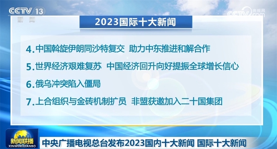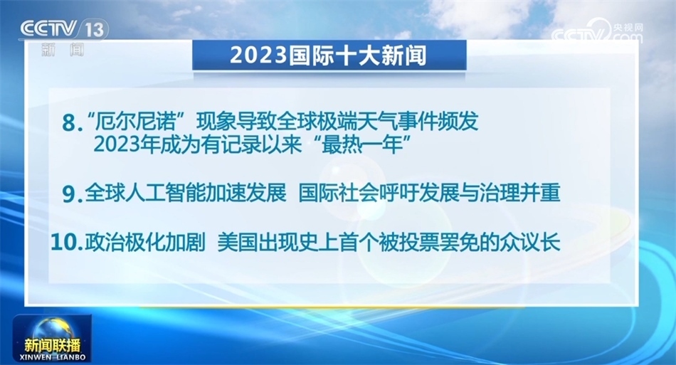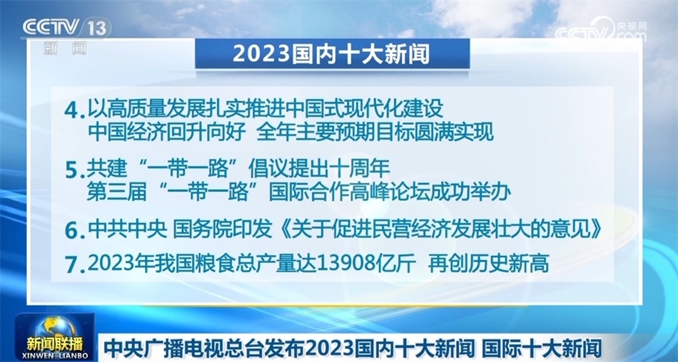 央視網(wǎng)消息(新聞聯(lián)播):中央廣播電視總臺今天(12月27日)發(fā)布2023國內(nèi)十大新聞和國際十大新聞。