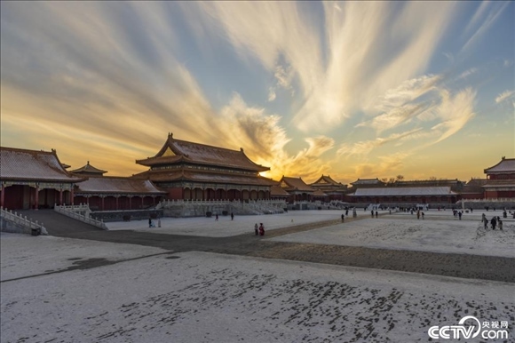12月26日,北京,故宮上空彩云飛舞,美不勝收。