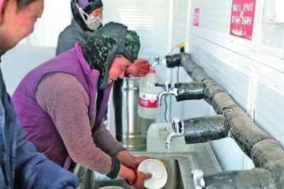 12月26日,群眾在陳家村安置點防凍水房用水。光明日報記者 劉宇航攝/光明圖片