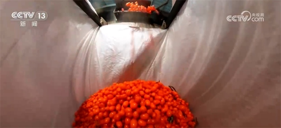 沙棘果送到工廠加工,而被分離出來的枝條也會被進一步利用。