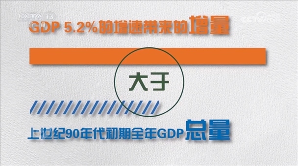 縱向看,目前我國每年GDP5.2%的增速所帶來的增量,已遠超上世紀90年代初期全年GDP總量。