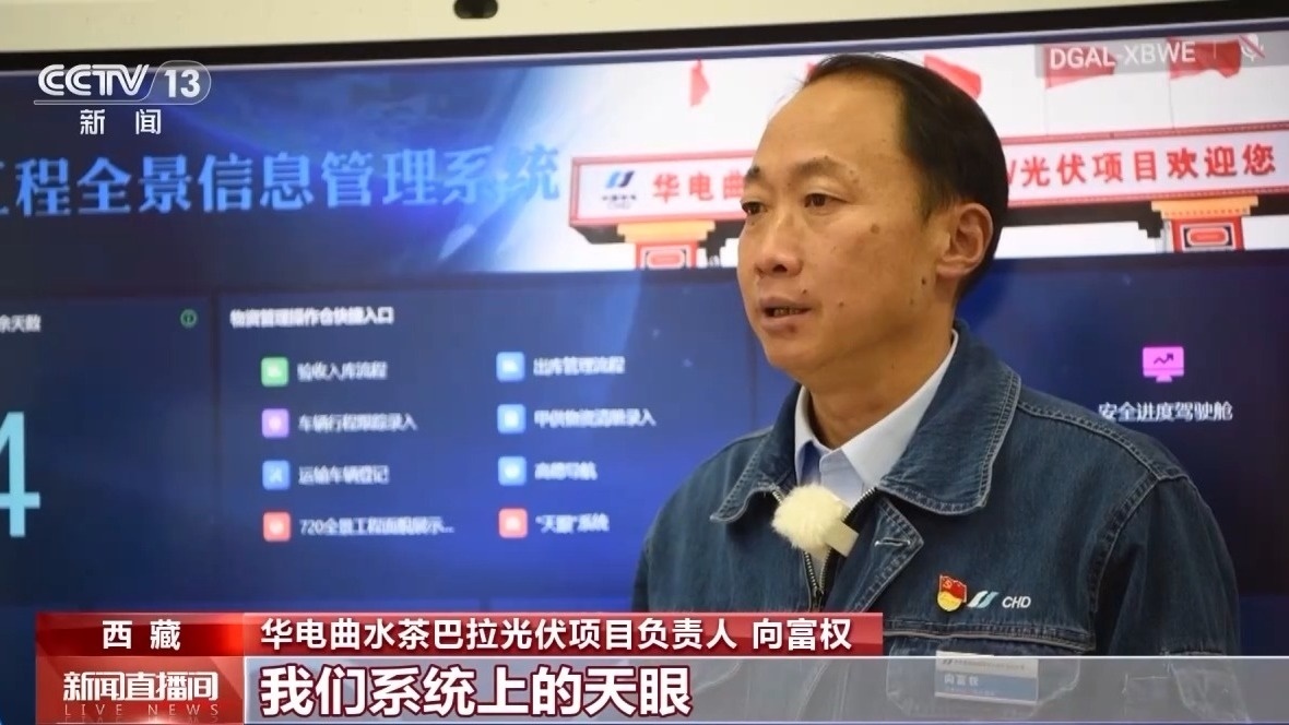 華電曲水茶巴拉光伏項目負責人 向富權:系統(tǒng)涵蓋現(xiàn)場管控、物資供應、資源投入等工程管理核心關鍵要素,管理人員可以實時掌控工程關鍵要素信息,還可以幫助工作人員及時消除異常狀況和管控風險。