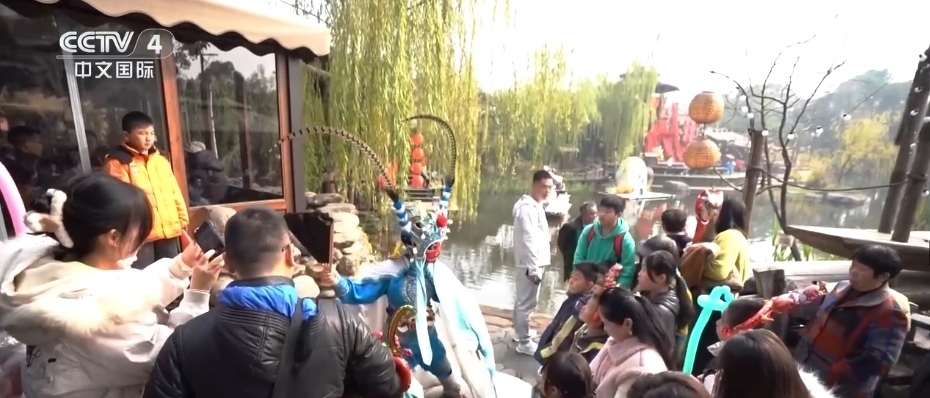 這個(gè)假期,體驗(yàn)國(guó)潮、非遺成了休閑旅游的新熱點(diǎn)。在山西大同,博物館以“龍”為主題,通過(guò)陶瓷器、青銅器等包含龍?jiān)氐恼蛊?,讓游客感受傳統(tǒng)文化的魅力。在江蘇蘇州,虎丘塔下的元旦游園會(huì),集合了傳統(tǒng)手藝、非遺文創(chuàng)及特色小吃,吸引大批游人參與。在遼寧盤錦,人們聚在一起貼窗花、做糖畫、看表演,喜慶氛圍拉滿。湖南長(zhǎng)沙的市民游客,近距離體驗(yàn)民間戲曲、粽編等十余項(xiàng)湖湘非遺項(xiàng)目,感受濃厚的新年氛圍。廣西玉林的百年老街“十字街”上,非物質(zhì)文化遺產(chǎn)、民俗、美食一起打造了一個(gè)沉浸式互動(dòng)體驗(yàn)市集。