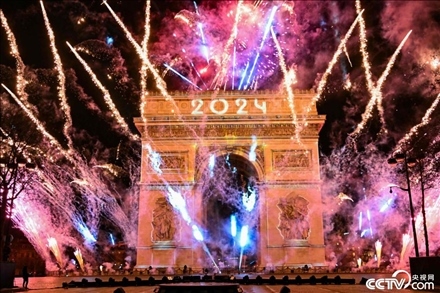 當(dāng)?shù)貢r(shí)間2024年1月1日,法國(guó)巴黎舉行新年慶祝活動(dòng),凱旋門前燃放煙花。