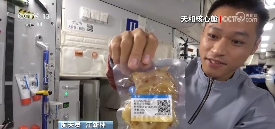 航天員 唐勝杰:給我們辛苦的03先來(lái)第一顆。