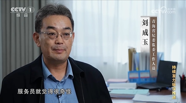 竇閩(中央紀委國家監(jiān)委機關(guān)工作人員):中央紀委國家監(jiān)委始終把落實中央八項規(guī)定精神作為監(jiān)督執(zhí)紀的底線性任務(wù),決不允許以高原地區(qū)喝酒驅(qū)寒為違規(guī)吃喝找借口,決不允許以鄉(xiāng)黨文化根深蒂固為喝酒聚餐找理由。查辦案件過程中,我們堅持與以案促改促治同謀劃、同部署、同推進,指導青海省委、省紀委監(jiān)委在全省開展專項教育整治,推動中央八項規(guī)定精神在高原大地落地生根。