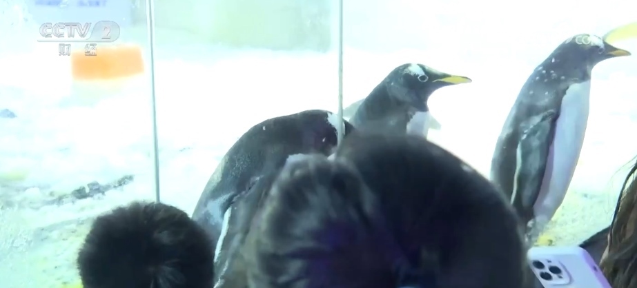 除了滑雪場(chǎng),冰雪主題樂(lè)園也同樣火熱。在新密市一處滑雪樂(lè)園內(nèi),親子冰雪項(xiàng)目受到青睞,樂(lè)園里的企鵝之家能夠讓孩子們近距離觀賞企鵝,頗受歡迎。