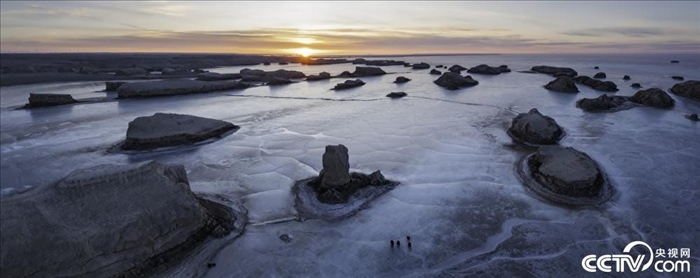 青海海西,大柴旦行委西臺地區(qū),水上雅丹冬季日出風(fēng)光。