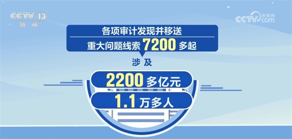 2023年1月至11月,全國(guó)共審計(jì)5.6萬(wàn)多個(gè)單位,促進(jìn)增收節(jié)支和挽回?fù)p失3600多億元,健全完善規(guī)章制度1.6萬(wàn)多項(xiàng)。各項(xiàng)審計(jì)發(fā)現(xiàn)并移送重大問(wèn)題線索7200多起,涉及2200多億元、1.1萬(wàn)多人。