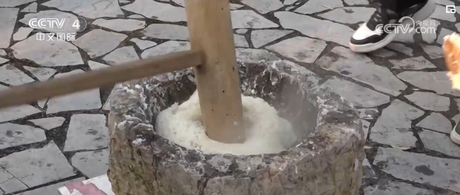 迎接新春,除了大飽眼福,還要大飽口福。在重慶市秀山土家族苗族自治縣,當?shù)赜羞^年打糍粑的習俗,人們手持木錘,圍著特制的盛米容器石臼,爭相體驗傳統(tǒng)打糍粑的樂趣。一塊塊熱氣騰騰的糍粑,也寓意著團團圓圓、平平安安。
