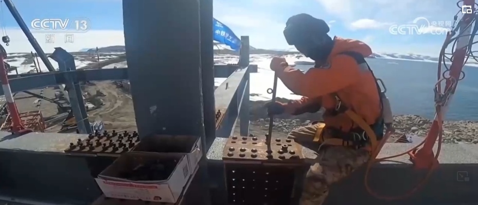 因?yàn)槟蠘O不具備現(xiàn)場焊接的條件,新站的鋼結(jié)構(gòu)搭建是通過7萬套螺栓連接而成的。為了加快建設(shè)進(jìn)度,全站104名隊(duì)員全都參與到了現(xiàn)場的施工作業(yè)中。
