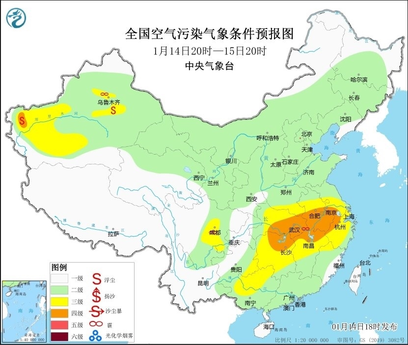 14日夜間至15日白天,受上游污染物傳輸影響,湖北、湖南、江西中北部等地有短時輕至中度霾。15日夜間起,受冷空氣和降水影響,區(qū)域大氣擴散條件逐漸好轉(zhuǎn)。