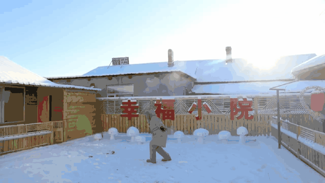中午,民宿經(jīng)營者史瑞娟趁著客人們休息,給雪人上色。今年冬天,史瑞娟在家門口堆了兩個(gè)大雪人,還把小院重新布置了一番。效果挺明顯,幾乎天天滿房。