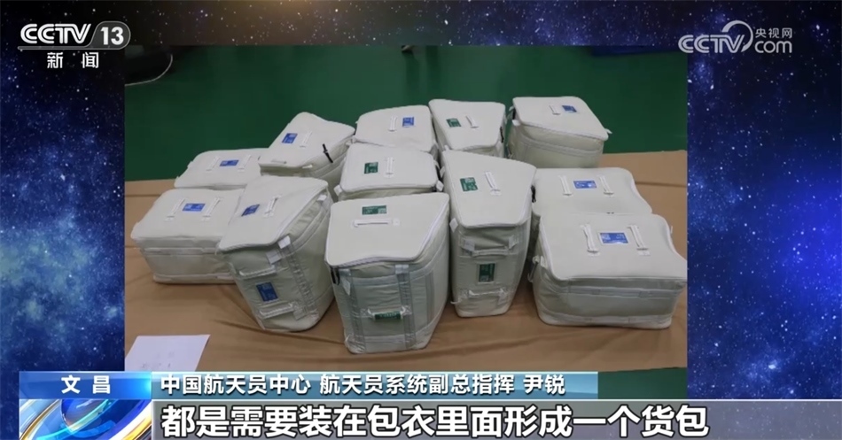 中國航天員中心 航天員系統(tǒng)副總指揮 尹銳:上行貨包外包裝的包衣,這個(gè)包衣里面添加了一些甲殼素的材料,讓它具有了一些抗菌防霉的作用。我們乘員的物資、航天員個(gè)人的裝備等以及環(huán)控生保的這些物資,都是需要裝在包衣里面形成一個(gè)貨包,然后整船進(jìn)行交付。