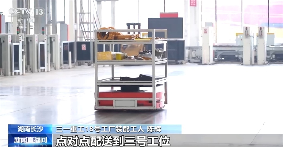 三一重工18號工廠裝配工人 陳輝:對于我們一個組裝工人來說,最麻煩的事莫過于找料和取料。我們過去都是自己找、自己拿,現(xiàn)在我們都是通過AGV小車點對點配送到三號工位。