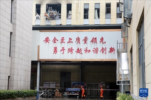1月20日,消防救援人員在處置爆炸事故現(xiàn)場。新華社發(fā)